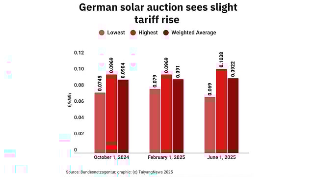 Germany’s June 1, 2025 solar tender awarded 255 MW across 118 winning bids out of 127