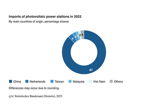 The German Federal Statistical Office (Destatis) counts the country to have imported €3.6 billion worth of solar PV cells, modules and the like in 2022, while it exported PV products for a total of €1.4 billion. China accounted for the bulk of German imports, €3.1 billion.