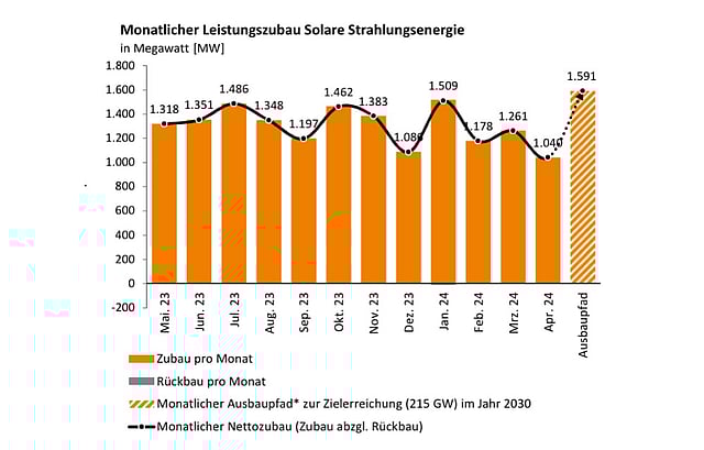 Targeting 215 GW of solar PV capacity by 2030, Germany officially adopted the Solar Package I on April 26, 2024. According to the Federal Ministry for Economic Affairs and Climate Action (BMWK), this package will accelerate the rate of PV expansion with a simplified and less bureaucratic deployment. It also includes provisions related to residential solar including balcony solar to ensure participation of tenants, and ground-mounted installations. Grid expansion is also part of the plan.
