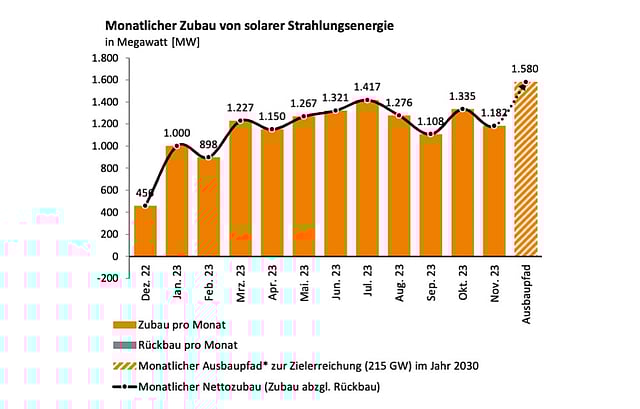However, it needs to grid-connect over 1.58 GW/month to reach the federal target of 215 GW by 2030.