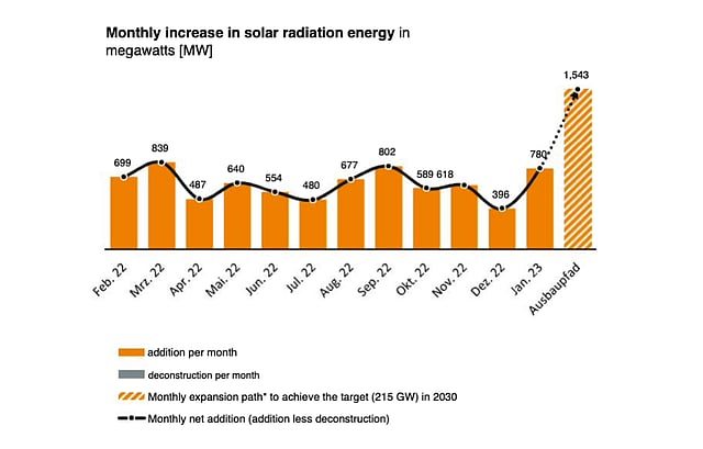 January 2023 numbers are nearly twice as high as the December 2022 additions of 396 MW, which is an updated number from 350 MW the agency previously announced (see Germany Exited 2022 With 7.2 GW New Solar Installed).