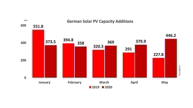 In 2020, Germany had its highest solar installation in a single month in May 2020 with 446.254 MW added, as per Bundesnetzagentur or the Federal Network Agency. This is several notches higher than the 227.8 MW the country reported for May 2019.