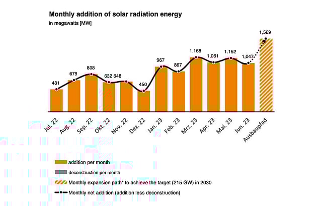 Germany continued its monthlyGW scale solar PV installation streak with the addition of 1.047 GW in June 2023, according to Bundesnetzagentur. The German network regulator counts the country's total installed PV capacity in the first half of this year to have grown to 6.26 GW. If this growth level is maintained, the country could end up with around 12 GW annual capacity this year, which would be significantly higher than the 9 GW targeted for 2023 by Germany's government.