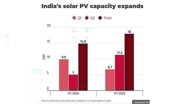 India installed 18 GW solar capacity in H1 2025, up 31% year-on-year, driven by surge in Q2, says Mercom