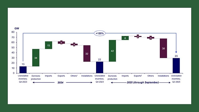 In its latest report titled Perfect Storm in the Indian Solar Supply Chain, Wood Mackenzie expects the rapid expansion, driven by the Production Linked Incentive (PLI) scheme, to result in an inventory buildup of around 29 GW by Q3 2025, a 125% increase from Q4 2023.