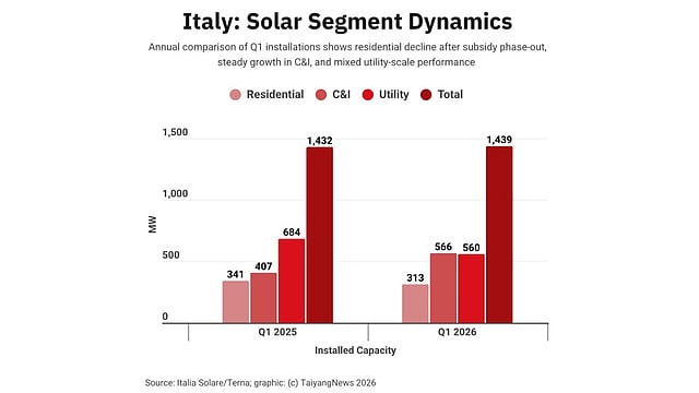 “In this first quarter, the data confirm the downward trend seen in 2025, and in any case, not the growth needed to reach the 79 GW target by 2030,” said Italia Solare President Paolo Rocco Viscontini. “What we expect in the coming months is a recovery, especially in the residential and C&I sectors, precisely in response to the rising energy costs.”