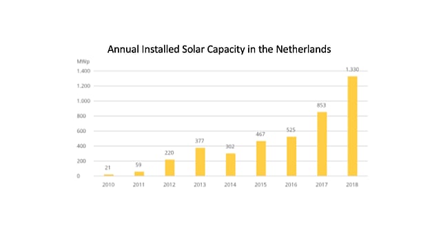 However, the official statistics were much less for 2017 at 700 MW (see Netherlands' Cumulative PV Capacity Hits 2.7 GW). Nonetheless, 2018 was the first year when solar installations crossed the 1 GW mark since 2010.