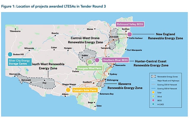 The New South Wales (NSW) has selected 3 renewable energy projects with a combined 750 MW capacity, including a 350 MW solar power plant, for the 3rd tender round concluded under the state's Electricity Infrastructure Roadmap.