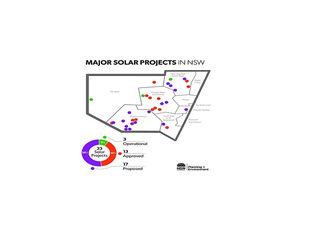 Out of 33 solar power projects in NSW, three are operational, 13 are approved and there are proposals for 17 more, according to a tweet from the Department.