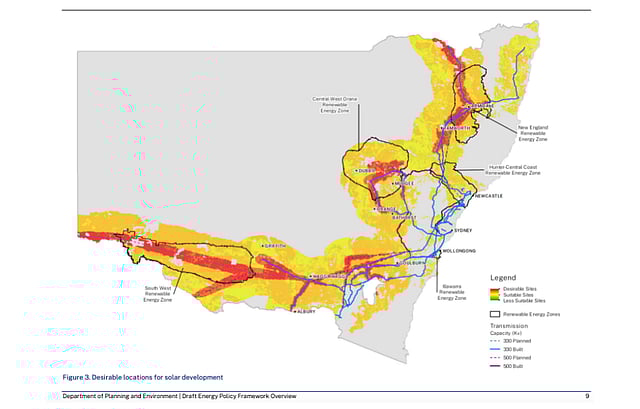 The share of desirable and suitable sites for large-scale solar PV power plants heavily overshadows wind energy in the draft energy guidelines issued by New South Wales (NSW), Australia that are aimed at accelerating their development.