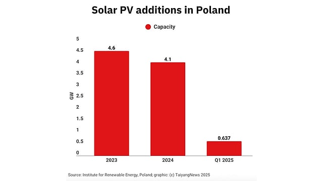 Poland added 637 MW of solar PV capacity in Q1 2025, but small-scale installations saw a dip in their market share