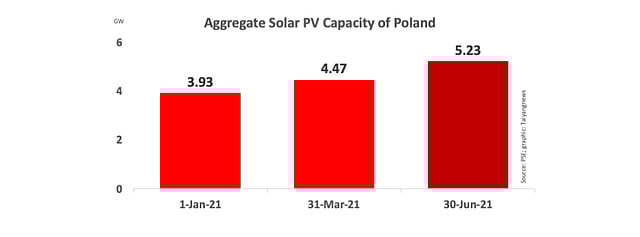 Polish grid operator Polskie Sieci Elektroenergetyczne (PSE) has announced Poland exceeding 5 GW of cumulative solar power capacity, recording 5,232 MW of total capacity by June 30, 2021. On its Twitter account, the grid operator said this is according to the data submitted by transmission system operator (TSO).