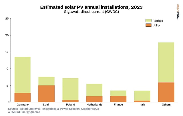 "Rooftop solar is driving the transformation of Europe's renewable energy landscape, from a niche market to a powerful force in reshaping the continent's energy mix," said Vice President and Head of EMEA Renewables Research at Rystad, Vegard Wiik Vollset.