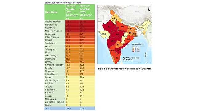Maharashtra, Rajasthan, Andhra Pradesh, Madhya Pradesh, Karnataka, and Uttar Pradesh together account for nearly 50% of India’s estimated agrivoltaic potential