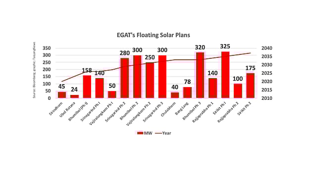 The Electricity Generating Authority of Thailand (EGAT) is planning to build 2.7 GW of floating solar power capacity on its dam reservoirs by 2037. This capacity will be established in the form of 16 solar farms on 9 of its hydroelectric dam reservoirs, according to Bloomberg. Future plans include using lithium-ion battery energy storage to store power generated by these projects.