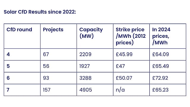 The UK awarded 157 solar projects totaling 4.9 GW in CfD AR7, the highest solar capacity ever procured in a single round