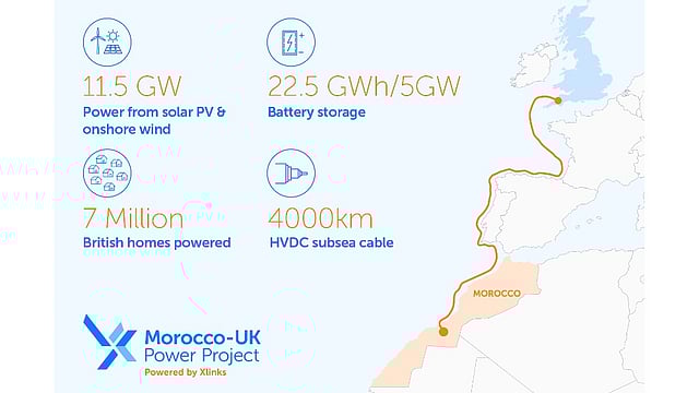 For the UK, Xlinks proposed to secure 3.6 GW of energy supply from the project for an average of 19+ hours/day to power over 7 million homes. This, the company believes, will cover 8% of Great Britain’s electricity needs.