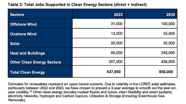 Solar jobs are expected to rise from 20,000 to 35,000, while offshore wind would need 100,000 workers