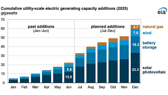 EIA expects the US to add 33.3 GW of utility-scale solar in 2025, accounting for over half of the total new power-generating capacity