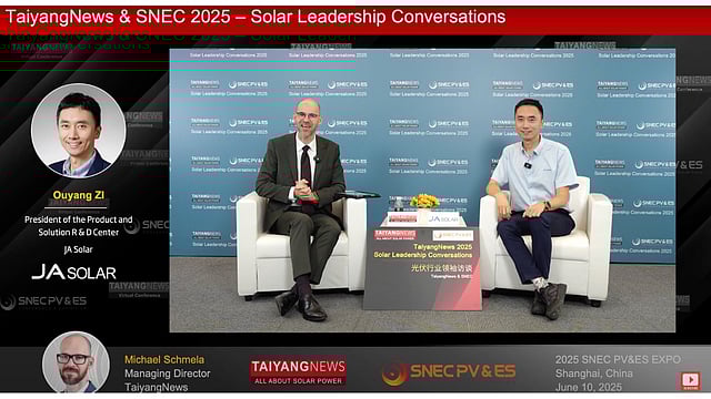 As part of the TaiyangNews SNEC Solar Leadership Conversations 2025 at the world’s largest solar trade show, SNEC 2025, TaiyangNews Managing Director Michael Schmela spoke exclusively with Dr. Ouyang ZI, the CTO and also the President of the Product and Solution R&D Center at one of the leading solar PV technology companies, JA Solar.