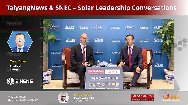 Chinese solar inverter supplier Sineng's President Yuhe Duan spoke exclusively with TaiyangNews Managing Director Michael Schmela during the recently concluded SNEC Conference & Exhibition 2023 in Shanghai, as part of TaiyangNews & SNEC Solar Leadership Conversations.