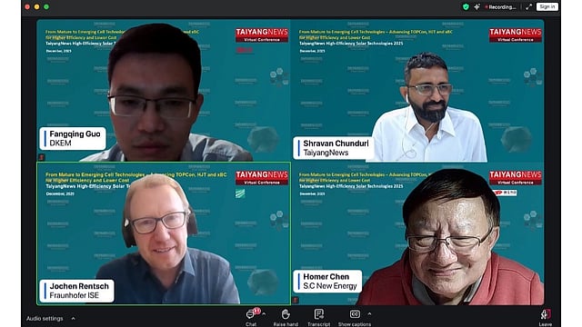 The panel discussion on Day 2 of the TaiyangNews High Efficiency Solar Technologies 2025 Conference on December 4 delved into the subject. The panel comprised Fraunhofer ISE Head of Technology Transfer Jochen Rentsch, the Associate Dean of Research Institute, Shenzhen S.C New Energy Homer Chen, and DKEM’s Director of New Technology Development, Fangqing Guo. It was moderated by TaiyangNews Head of Technology, Shravan Chunduri.
