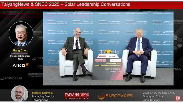 At the world’s largest solar trade show, SNEC 2025, in Shanghai, China, TaiyangNews Managing Director Michael Schmela sat down for an exclusive interview with the President and Founder of back contact (BC) technology specialist AIKO, Gang Chen as part of the TaiyangNews SNEC Solar Leadership Conversations 2025.
