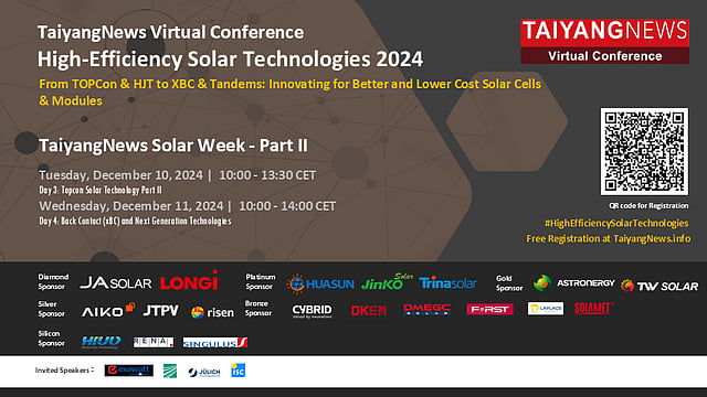 TaiyangNews has hosted its annual flagship event – High-Efficiency Solar Technologies 2024. Spread across December 2 and 3, and December 10 and 11, this annual flagship conference of TaiyangNews brought together stakeholders from across the PV industry