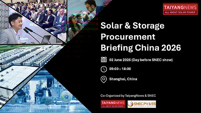 Join an exclusive gathering of global procurement leaders from EPCs and developer, and PV and BESS technology innovators at the TaiyangNews Solar & Battery Procurement Briefing China 2026. The high-level industry event is designed to offer international buyers a strategic preview of the technologies that will shape the next phase of battery deployment and solar manufacturing technologies.