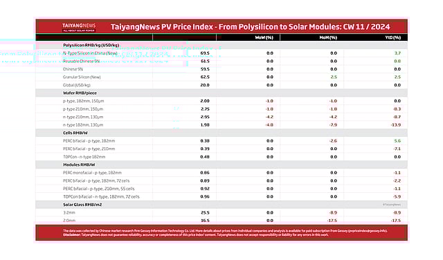 TaiyangNews PV Price Index – from polysilicon to solar modules:2024 CW 11 | |||
