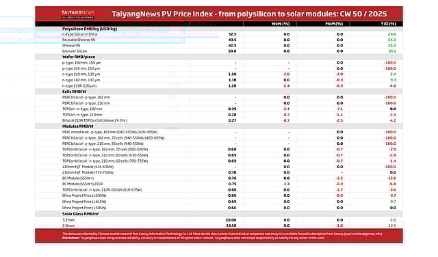 Disclaimer: TaiyangNews does not guarantee reliability, accuracy or completeness of this price index’ content. TaiyangNews does not accept responsibility or liability for any errors in this work.