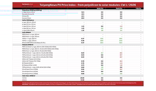 Disclaimer: TaiyangNews does not guarantee reliability, accuracy or completeness of this price index’ content. TaiyangNews does not accept responsibility or liability for any errors in this work.
