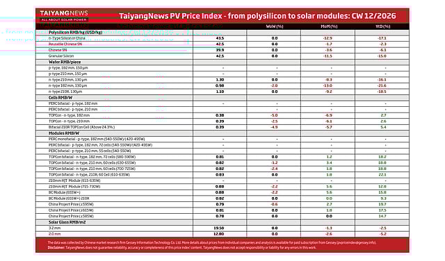 Disclaimer: TaiyangNews does not guarantee reliability, accuracy or completeness of this price index’ content. TaiyangNews does not accept responsibility or liability for any errors in this work.