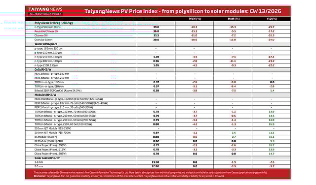 Disclaimer: TaiyangNews does not guarantee reliability, accuracy or completeness of this price index’ content. TaiyangNews does not accept responsibility or liability for any errors in this work.