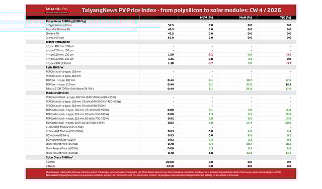 Disclaimer: TaiyangNews does not guarantee reliability, accuracy or completeness of this price index’ content. TaiyangNews does not accept responsibility or liability for any errors in this work.