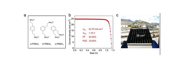 Using a 3D chemistry approach to better the manufacturing process of perovskite solar cells, a team of researchers led by Switzerland's École polytechnique fédérale de Lausanne (EPFL) has announced achieving a perovskite solar cell efficiency of 23.9%, on an active area of 26 cm².