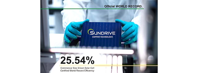According to a Bloomberg report, SunDrive has received official word from the German Institute for Solar Energy Research Hamelin (ISFH) for the record level efficiency. It has achieved the efficiency level using copper for the solar cell, replacing silver, which is found in abundance and at a much cheaper rate than silver.