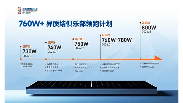 Its technical roadmap targets to exceed 800 W output for HJT modules with 25.75% efficiency