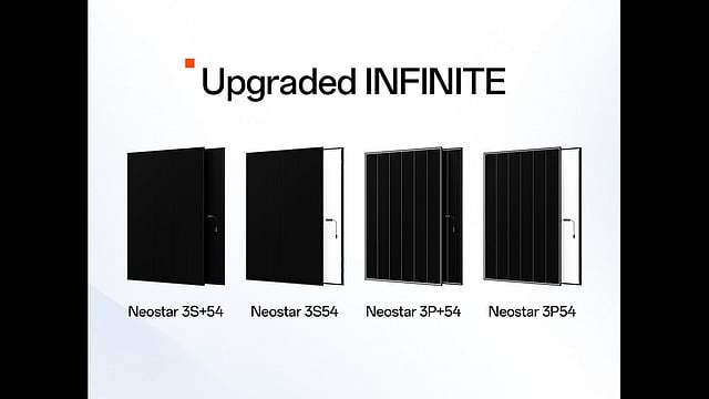 Starting with all-black variants, equipped with 108 ABC half-cut cells, NEOSTAR 3S54 (mono-glass) and NEOSTAR 3S+54 (dual-glass)are rated for a power output of up to 490 W and a maximum efficiency of 24.5%. The former model is laminated with 3.2 mm front glass and backsheet, while the latter features 2 mm front and rear glass.