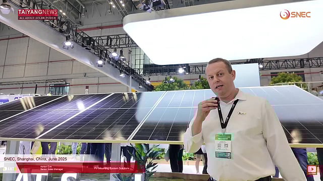 Adrian Eve, Senior Sales Manager for PV Mounting System Solutions at Antaisolar, provided a brief overview of the displayed products to Shravan Chunduri, Head of Technology at TaiyangNews, during a visit to the company’s booth during the event.