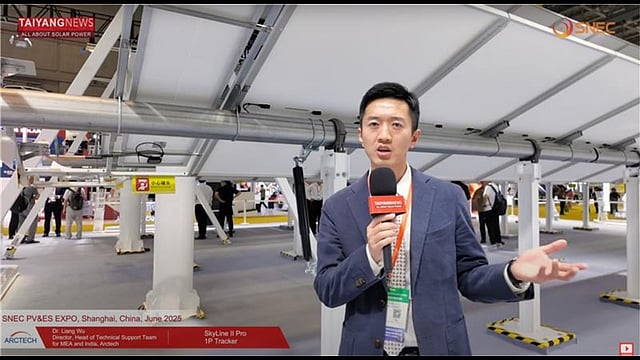 Arctech displayed its SkyLine II Pro series 1P tracker, suitable for ground-mount PV installations