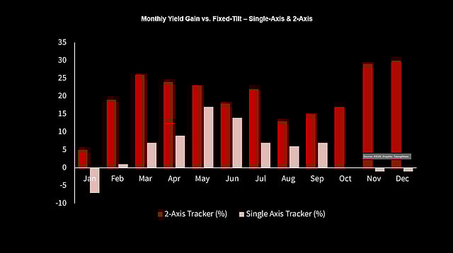 The beauty of dual-axis trackers is that they can maintain an optimal angle of incidence throughout the day and year and are technically superior. However, due to their complex mechanical architecture and heavy structural requirements, they are not well accepted in commercial utility-scale deployments.