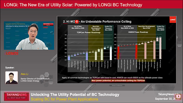 TaiyangNews hosted a webinar titled ‘Unlocking the Utility Potential of BC Technology’ in H2 2025, where Alex Li from LONGi presented the company’s latest developments and why it positioned BC as the next step for utility-scale solar instead of pushing TOPCon.