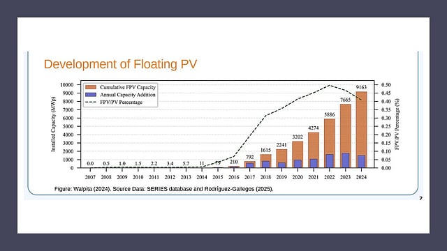 FPV carries immense potential, as a January 2025 SERIS research found. It pegs FPV potential at 22 TW, utilizing just 10% of the world’s inland reservoirs (see 22 TW FPV Can Be Hosted On Just 10% Of World’s Inland Reservoirs: Research).