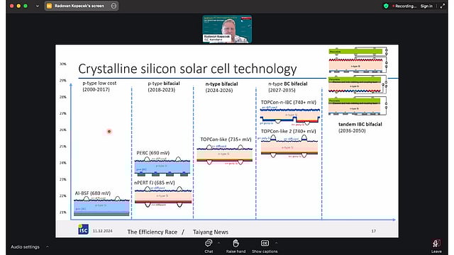 Day 4 of the 4-day TaiyangNews High Efficiency Solar Technologies 2024 conference was devoted to XBC and next-generation technologies. The keynote speaker for the day, the Co-Founder and Director of ISC Konstanz Radovan Kopecek, shared his perspectives on the efficiency race for various new-age technologies.