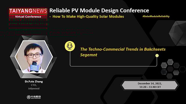 The CTO of the world's largest solar backsheets manufacturer Jolywood, Dr Fute Zhang, at the recent TaiyangNews Reliable PV Module Design Virtual Conference, said any organic material used for backsheets will lead to toxic and harmful derivatives after burning. However, using non-fluorine based backsheet will reduce reliability, he emphasized, advising these products should be made using fluorochemicals. Jolywood is now also offering transparent backsheets with and without grid.