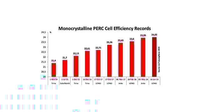 "This is the first time that the efficiency of monocrystalline PERC solar cells in commercial dimensions have exceeded 24%," emphasized Dr. Li Hua, LONGi Solar, Vice President of Cell R&D. "In the last three consecutive years LONGi Solar has developed three generations of 'Hi-MO' products based on PERC technology, which are setting the efficiency and reliability benchmark of high-efficiency PERC technology within the industry."
