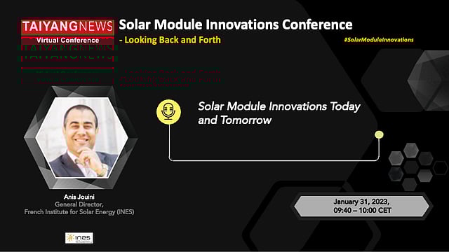 Speaking at the TaiyangNews Solar Module Innovations Conference 2023, Anis Jouini, General Director of the French National Institute for Solar Energy (INES) pointed out one major change in PV technology industry over the years. So far there was a focus only on silicon solar cell innovations to increase its efficiency to 25% which now needs to be taken to mass production scale, he said. Jouini also batted for local manufacturing after factoring in carbon footprint of the PV industry when counted with regard to massive logistics and transportation costs, and not to forget the current energy crisis. To view the presentation of Jouini's video, click on the main photo (the presentation starts after a short conference introduction).