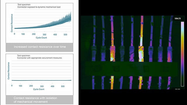 Stäubli addressed this issue through extensive laboratory testing and field inspections of tracker-based PV systems to understand how cyclic mechanical loads affect DC connectors
