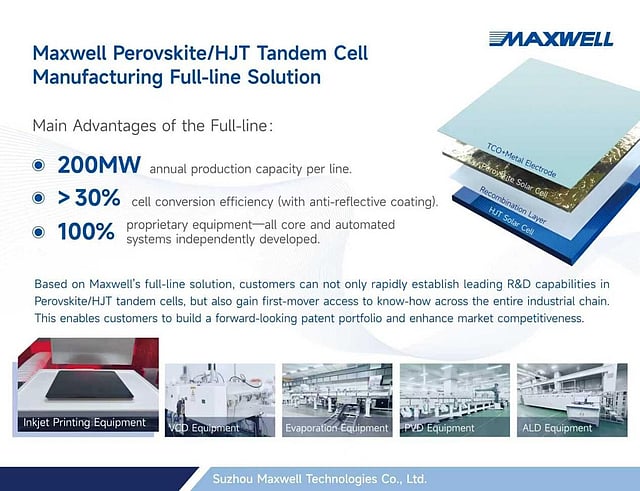 Suzhou Maxwell Technologies has introduced its latest turnkey perovskite-HJT tandem cell line at the 4th Perovskite Technology, Equipment and Materials Forum